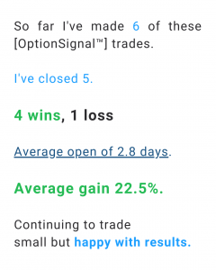 A TradeMachine® and OptionSignal™ user tracked their personal trades and shared them with us: