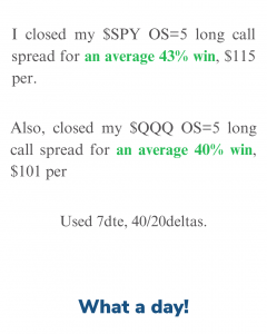 • The trader cycled through SPY and QQQ spreads/diagonals with short holding periods (often just a few days).